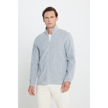 AC&Co / Altınyıldız Classics 4A5221100014GMJS Standart Fit Fermuarlı Bato Yaka Polar Erkek Ceket Gri