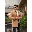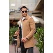 Erkek Dar Kesim Yün Karışımlı Kaşe Gömlek Yaka Palto Kaban - Camel