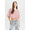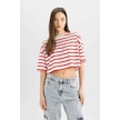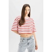 Defacto Coool Fitted Çizgili Kısa Kollu Tişört A9046AX24SMRD44 Kırmızı