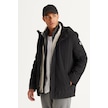 AC&Co / Altınyıldız Classics Erkek Sıyah Standart Fit Normal Kesim Kapüşonlu Dik Yaka Trençkot Siyah