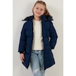 Lela Yakası Suni Kürklü Peluş Astarlı Çıkarılabilir Kapüşonlu Dar Kesim Kışlık Kız Çocuk Mont 5760002 Saks