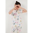 Lela % 100 Pamuk Bisiklet Yaka Kısa Kollu Kız Çocuk Pijama Takımı 6651004 Ekru