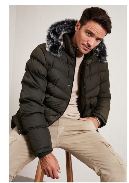 Buratti Slim Fit Suni Kürklü Peluş Astarlı Çıkarılabilir Kapüşonlu Şişme Erkek Mont 5761080 B Haki