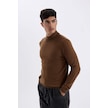 Defacto Slim Fit Dar Kesim Yarım Balıkçı Yaka Basic Düz Triko Kazak R1127AZ24WNBN106 Kahverengi