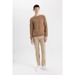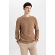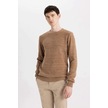 Defacto Standart Fit Normal Kesim Bisiklet Yaka Dokulu Basic Düz Triko Kazak R1175AZ24WNBN153 Kahverengi