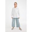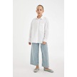 DeFacto Kız Çocuk Oversize Geniş Kalıp Poplin Basic Düz Uzun Kollu Beyaz Okul Gömleği C7482A824AUWT34
