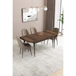 Sar Pakete Almira Serisi, Barok Ahşap Desen 80x132 Açılabilir Mdf Mutfak Masası Takımı 4 Adet Sandalye Cappucino