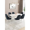 Sar Pakete Almira Serisi, Beyaz 80x132 Açılabilir Mdf Mutfak Masası Takımı 6 Adet Sandalye Antrasit