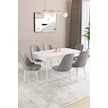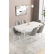 Sar Pakete Almira Serisi, Beyaz 80x132 Açılabilir Mdf Mutfak Masası Takımı 6 Adet Sandalye Gri