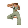 Yeşil 2 Adet/Takım Pantolon Üst Takım Dekolteli V Yaka Kolsuz Düz Renk Büzgülü İpli Yüksek Elastik Bel Dantel Kadın Yaz Pijama Takımı Gecelik Yeşil