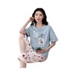 Açık Mavi Salon Pijama O-boyun Uyku Nefes Kızlar Yaz Karikatür Baskı T-shirt Mahsul Pantolon Seti Günlük Giyim Açık Mavi