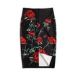 Kırmızı Çiçekler Karikatür Baskılı Kalça Etek Kadın Yaz Zayıflama Yüksek Bel Geri Yarık Orta Uzunlukta Tek Adım Etek Banliyö Ofis Etek Çiçekler Kırmızı