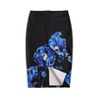 Mavi Çiçekler Karikatür Baskılı Kalça Etek Kadın Yaz Zayıflama Yüksek Bel Geri Yarık Orta Uzunlukta Tek Adım Etek Banliyö Ofis Etek Çiçekler Mavi