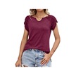 Bordo Hnxc Kadın Modası Rahat Yazlık Düz Renk Baskılı Kısa Kollu U Yaka Bluzlar Ve Gömlekler Bordo