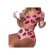 Pembe Moda Kadın O-boyun Kısa Kollu Şort Ev Giyim Pijama Elastik Bel Çizgili Sleepweara Pembe