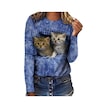 Lacivert Komik Sevimli Kedi 3d Baskı Gömlek Rahat Kazaklar Kadın Kıyafetleri İlkbahar Sonbahar Uzun Kollu Tişörtler Kadın Giyim Moda Üst Giyim Lacivert