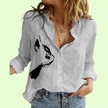 Gri Bayanlar Rahat Kedi Baskı Bluzlar Kadın Moda Yaka Yaka Hırka Gömlek Ince Pamuk Keten Üst