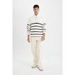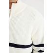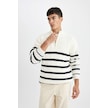 DeFacto Standart Fit Dik Yaka Yarım Fermuarlı Çizgili Triko Kazak D3274AX24WNER139 Ekru