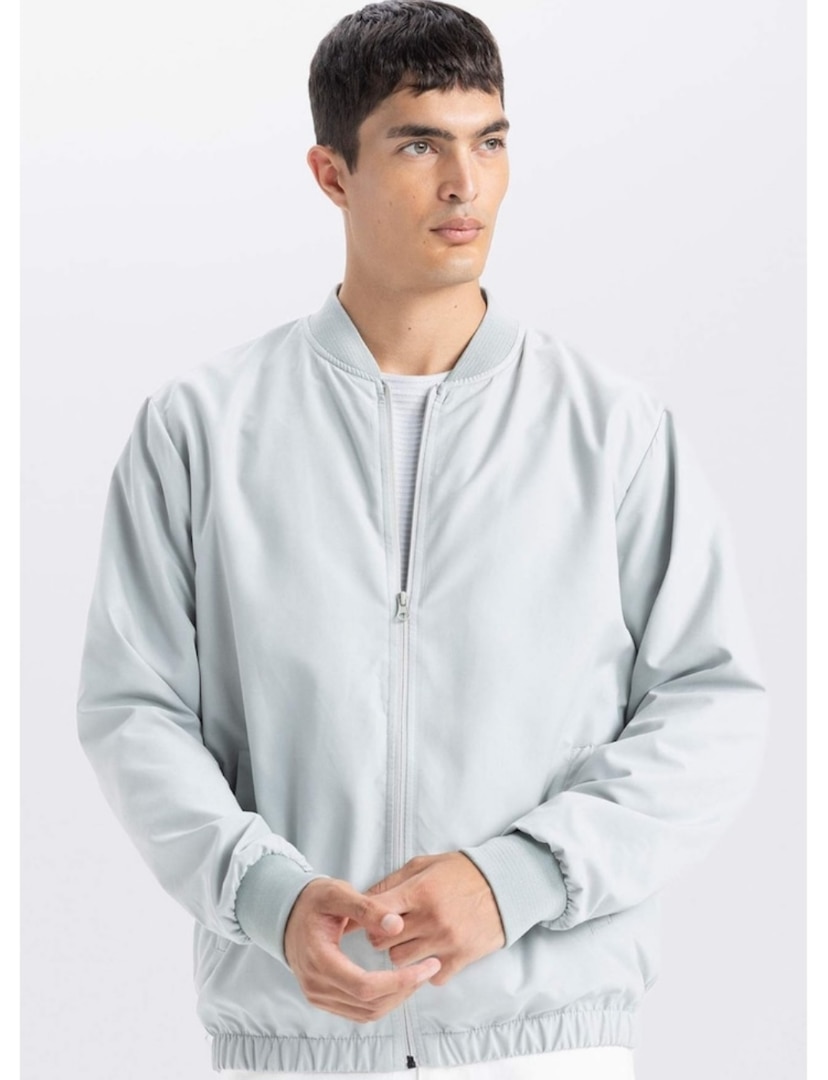 DeFacto Su İtici Hafif İnce Bomber Mont Ceket Kolej Yaka Fermuarlı Cepli Mevsimlik D7447AX24AUGN1255 Yeşil