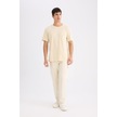 DeFacto New Regular Fit Bisiklet Yaka Basic Düz Kısa Kollu Tişört E1091AXNSER135 Ekru