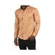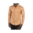 Deepsea Erkek Camel Likralı Çıtçıtlı Kırışmayan Süet Kumaş Slim Fit Cepsiz Mevsimlik Gömlek 2500556 False Camel