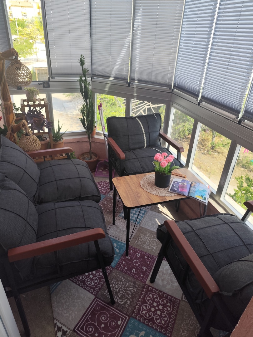 Mygusi Modern Balkon, Bahçe, Cafe - Metal Kanepe Koltuk Takımı - 2+1+1 Sehapalı Antrasit