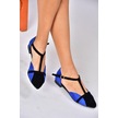 Fox Shoes B726881802 Saks Mavi/siyah Süet Kadın Babet Saks Mavi/siyah Saks Mavi - Siyah