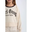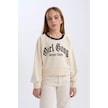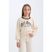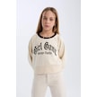 DeFacto Kız Çocuk Relax Fit Bisiklet Yaka Baskılı İçi Yumuşak Tüylü Sweatshirt D7042A824WNBG734 Bej