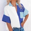 Yaz Moda Rahat Gevşek Gömlek Kadın Patchwork Renk Kısa Kollu Pamuklu Bluz Kadın Düğme Yukarı Gömlek Elbise Tops 26436 Mavi