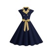 Zarif Bayan Elbise Nokta Baskılı Yaka Yaka Yay Üzerinde Bel Tatlı Tarzı Rahat Parti Elbise Kolsuz Sıkı Bel Ince Orta Uzunlukta Elbise Kadın Lacivert