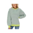 Hnxc Kadın Modası Rahat Çizgili Baskılı Uzun Kollu O-boyun Kapşonlular Ve Sweatshirtler Yeşil&beyaz Yeşil - Beyaz