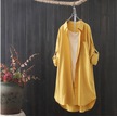 Kadın Pamuk Ve Keten Gömlek: 2023 İlkbahar/sonbahar Yeni Bol Uzun Kollu Üst İnce Ceket Orta Uzunlukta Saf Kumaş. Sarı