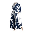 Kadın Bahar Sonbahar Elbise Yaka V Yaka Renk Eşleşen Sıkı Yüksek Bel Orta Buzağı Uzunluğu A-line Gevşek Etek Sot Baskı Bayan İşe Gidip Parti Midi Elbise Lacivert