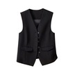 Kadın İş Yelek V Yaka Kolsuz Düz Renk Tek Göğüslü İşe Gidip Gelme Tarzı Hırka Takım Elbise Ceket Siyah