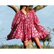 Yaz Kadın Elbisesi Moda Büyük Metre Gevşek Askılı Kişiselleştirilmiş Edebi Retro Avrupa Ve Amerikan Tarzı Baskılı Elbiseler Kırmızı