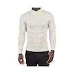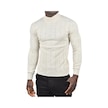 Deepsea Erkek Bej Slim Fit Likralı Tüylenme Yapmayan Yarım Balıkçı Çizgili Triko Yarım Boğazlı Kazak 2505503 Bej