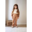 Kız Çocuk Kol Triko Modelli Punch İşlemeli Gabardin Pantolonlu 2li Takım Kahverengi