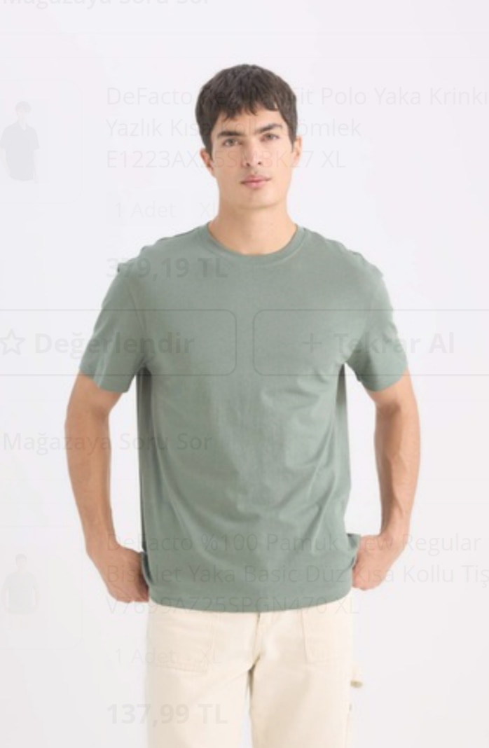 DeFacto %100 Pamuk New Regular Fit Bisiklet Yaka Basic Düz Kısa Kollu Tişört V7699AZ25SPGN470
