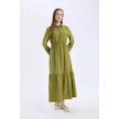 DeFacto Gömlek Yaka Basic Düz Düğmeli Beli Büzgülü Uzun Kollu Maxi Elbise D5851AX25SPKH414