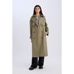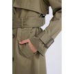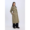 DeFacto Uzun Trençkot Kruvaze Yaka Düğmeli Cepli Kemerli Apoletli D5755AX25SPKH461 Haki