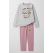 Breeze Kız Çocuk Eşofman Takım Simli Yazı Baskılı Sevimli Ayıcıklı 1.5-5 Yaş, Açık Gri Melanj Açık Gri Melanj