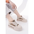 Muggo Zarina Kadın Kalın Taban Leopar Desenli Bağcıklı Günlük Sneaker Spor Ayakkabı Ten