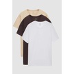 Ds Damat Slim Fit Kahve/bej/beyaz 3'lü Set V Yaka T-shirt 4hc14ortbn55m Kahve/bej/beyaz Çok Renkli