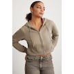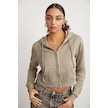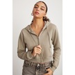 GRIMELANGE Delıa Kadın Crop İçi Polarlı Fermuarlı Organik Pamuklu Kapüsonlu Kordonlu Bej Sweatshirt Bej