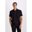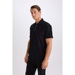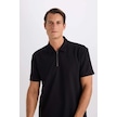 DeFacto Regular Fit Polo Yaka Yarım Fermuarlı Kısa Kollu Pilise Siyah Tişört B7355AX25SPBK81