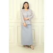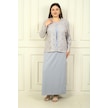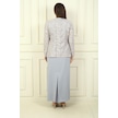 Yakası Boncuk Nakışlı Uzun Elbise Boncuk Pul Nakışlı Ceket Astarlı Büyük Beden 2'li Takım-38925 Gri