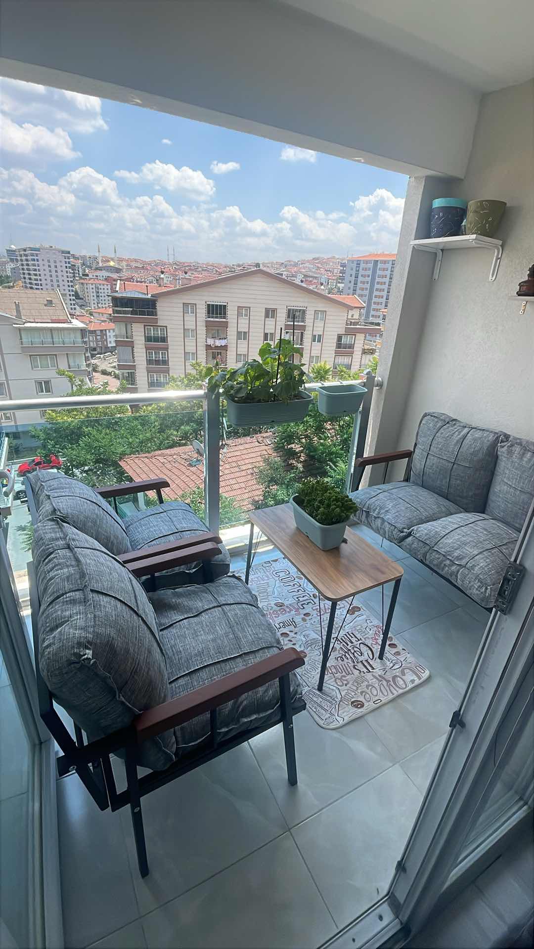 Modern Serisi Balkon, Bahçe, Cafe - Metal Kanepe Koltuk Takımı - 2+1+1 - Koyu Gri Koyu Gri