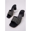 Bulutmod Ba04194 Siyah Kadın Hasır Örgülü Günlük Abiye Bohça 6 Cm Topuklu Terlik Siyah Siyah