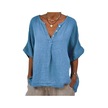 Pamuk Keten Kadın Gömlek V Yaka Düğmeli Yarım Patlet Yarım Kol Nefes Alabilir Bol Gökyüzü Mavisi