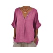 Pamuk Keten Kadın Gömlek V Yaka Düğmeli Yarım Patlet Yarım Kol Nefes Alabilir Bol Gül Kırmızısı